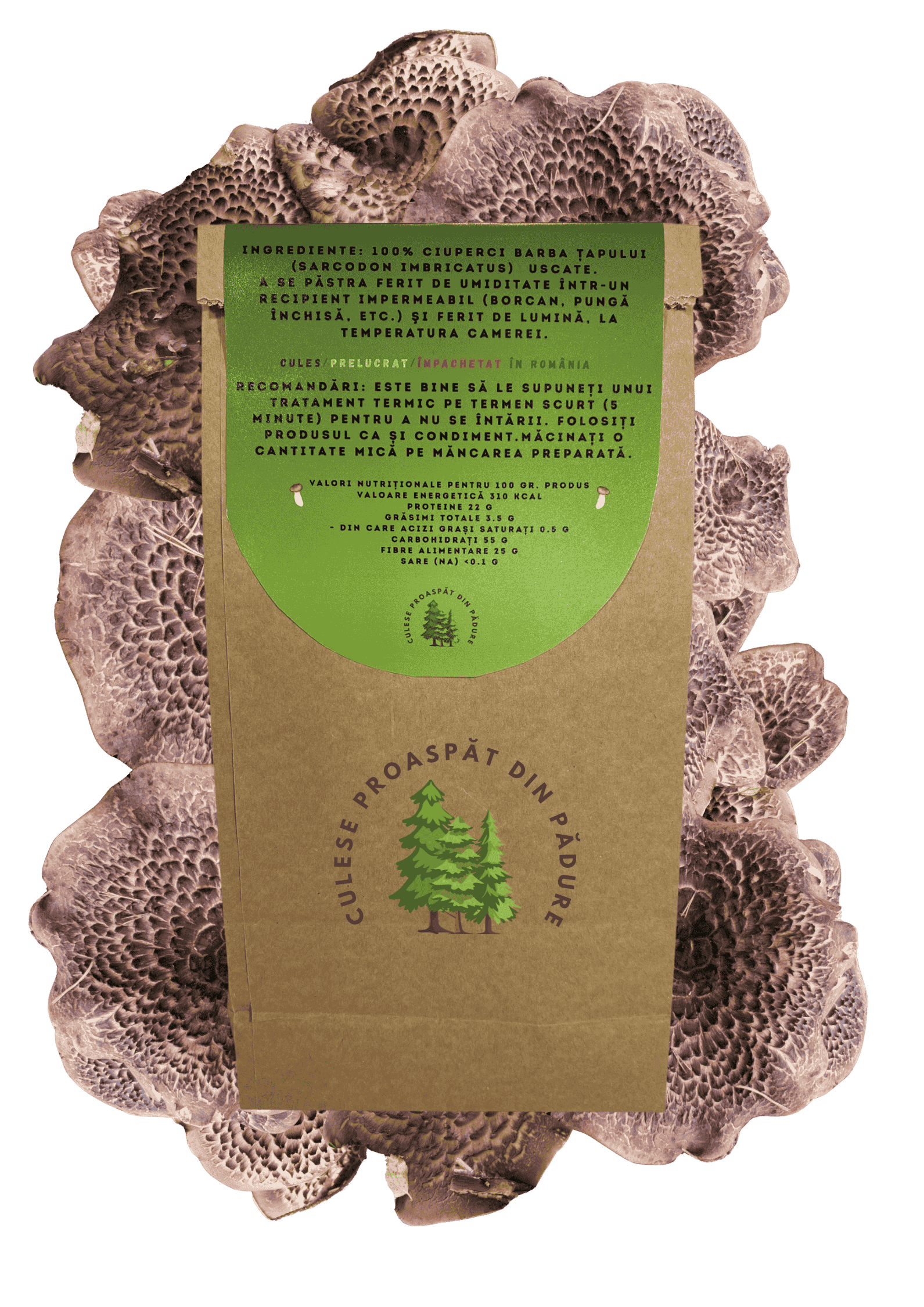 Cu o textură crocantă și o aromă de neuitat, Sarcodon Imbricatus uscat este ideală pentru a fi rehidratată și folosită în tocănițe, supe cremoase sau sosuri delicioase. 🥣 Nu vrei să o rehidratezi? Nicio problemă! Poți să o macini sub formă de pudră și să presari magia direct pe friptura ta de vită sau de vânat. 🔥
